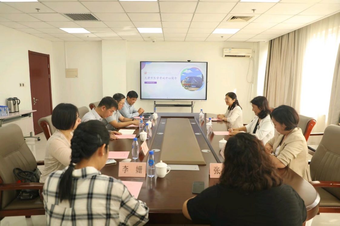 调研座谈会在天津市医学考试中心举行。天津市卫生健康委员会干部处处长雷勇、人事处三级调研员王宁出席座谈并对学院前期组织的教学培训班给予高度评价、对后续相关合作工作提出指导性意见。天津市医学考试中心主任曹伟、副主任翟志明详细介绍了中心在医学考试、人才评价及相关服务领域的职能定位、工作成果与发展规划。