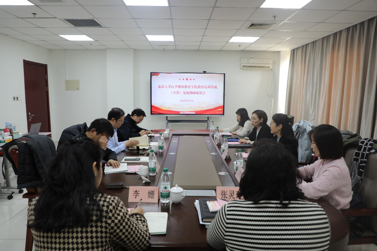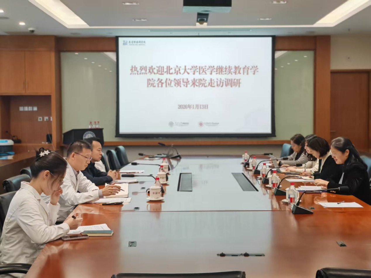 为推进天津教育培训基地的建设发展,深化人才培养合作,2026 年 1 月 13 日,北京大学医学继续教育学院教育培训中心主任王丽莉、教育发展中心主任孙宝芝等一行4人赴天津市医学考试中心开展专题调研。天津市卫生健康委干部处处长雷勇、天津市医学考试中心主任曹伟等有关负责同志参与座谈,双方围绕卫生健康干部与人才培养、基地建设规划、教育培训工作创新等议题展开深入交流。
